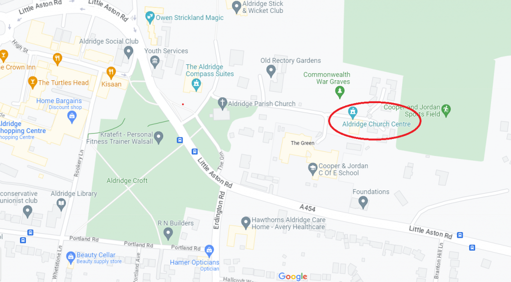 Parking will be limited, so if possible, we encourage attendees to walk or arrive with plenty of time. Please don’t block others and be aware there will be many young children in attendance. Please also note that there are double yellow lines in front of the main church building and along the road leading to Aldridge Cricket club, so please refrain from parking on these. Thank you.